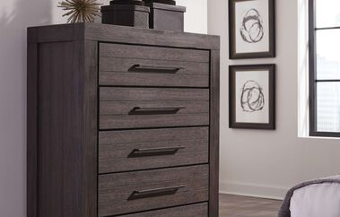 Chunky proportions and subtle details give the Heath collection a casual, understated modern appeal. Simulated tongue and groove panels, architectural bronze pulls and heavy butt-jointed frames are stained in a cool Basalt Grey for a depth and texture that keeps the active grain center stage.