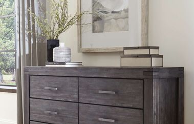 The Meadow bedroom collection is inspired by the elegance of simple design. The collection is crafted from the solid Acacia lumber. Known to many ancient worlds to represent purity and life, it is now a versatile material used for a wide range of purposes, from medicine to perfumes, and even paints. Its sleek lines showcase naturally occurring knot, grain, and color variations inherent to the timber. It is perfect for home decors for both its lustrous finish and shades, yet very durable. The Meadow collection offers the balance of rugged durability in a gracious graphite finish with rustic wire brushing, creating an elegant design, fitting for a variation of homes.